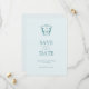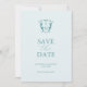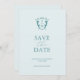 Anuncia tu compromiso con esta moderna tarjeta de "save the date". Cuenta con una mezcla de tipografía clásica y de escritura en turquesa sobre un fondo azul pálido sólido. Ingresa el monograma de la novia y el novio en el centro de un blasón. Todos los colores se pueden personalizar para adaptarse a la paleta de colores de tu boda. Utiliza los campos de la plantilla para personalizar con tu nombre y fecha de boda. Elige entre una variedad de papeles de alta calidad. Mi favorito para esta es perla con brillo. Combina y combina con muchos de mis diseños para crear tu tema de boda personalizado. Un diseño minimalista y tropical para bodas y anuncios de compromiso. Para ver el conjunto de papelería de boda a juego, visita www.zazzle.com/dotellabelle