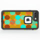 Patrón circular moderno con verduras azul turquesa, naranjas y colores oxidados.