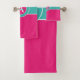 Juego de toallas de baño personalizadas con monograma verde azulado y rosa caliente