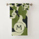 Toalla de baño de impresión de doble vaca, elegante, moderna y audaz, en tonos verde y negro. Dentro del círculo, hay un monograma con letras negras de marcador de posición, que es PERSONALIZABLE para que pueda añadir su inicial. Cuando es hora de modernizar la decoración de los cuartos de baño, no te equivoques con los audaces patrones de manchas de vaca... Podrá elegir entre una amplia selección de colores y regalos coordinados de Diseño Berenés.