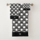 Monograma, círculos abstractos negros y líneas geométricas sobre blanco y negro.