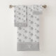 Monograma y hermosas flores sobre toallas grises plateadas.