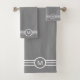 Elegante monograma y franjas blancas en el juego de toallas de baño grises. Monograma sólo en una cara.