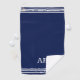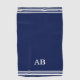 Tres rayas en azul marino y monograma. Toalla moderna y elegante.