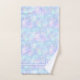 Este conjunto de toallas de baño de bonito tiene un diseño de invierno con copos de nieve blancos esparcidos por un fondo de tonos pastel azules, verde azulados, lavanda y rosa. Cada toalla tiene una barra en la parte inferior con un cuadrado para la letra monograma. Perfecto para las vacaciones o para darle a su baño un toque de invierno fresco.