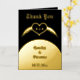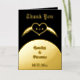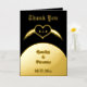 Esta increíble tarjeta de Boda de Relieve metalizado Gracias tiene un hermoso corazón negro gótico con alas cuerdas a ambos lados. El centro del corazón tiene un texto personalizado dentro de él para que puedas incluir las iniciales de la pareja feliz. Hay más texto personalizado para que puedas incluir los nombres de la pareja feliz y la fecha Boda. También hay texto personalizado en el interior para que puedas personalizar esta tarjeta con tu saludo. El texto personalizado en el frente está en un hermoso Relieve metalizado de oro.