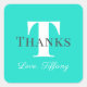Monogramado Gracias pegatinas y sellos para sobres. Elegantes pegatinas azul turquesa con monograma y texto personalizado. Diseño de plantillas de clase con tipografía y colores de guiones de moda. Añade tu propio nombre personalizado, eslogan de la empresa o presupuesto. Bonito verde / azul. Excelente por agradecer a amigos, familiares y invitados. Práctico para el glamoroso cumpleaños, fiesta de bodas, ducha de novia, aniversario, evento de negocios y mucho más.