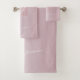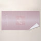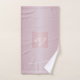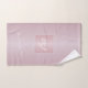 Toalla de baño monogramada de lujo de diseño, exclusiva y elegante, con una plaza de oro rosa sobre un elegante fondo metálico rosa. + Personalízalo con el nombre de la firma del guión o el nombre de la familia y las iniciales del nombre del monograma.