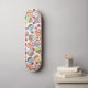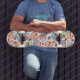 Monopatín que ofrece diseño con las porciones de magdalenas coloridas y de cerezas rojas en fondo del lunar.