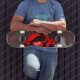Poli de motocicleta futurista de la manera del callejón en el monopatín.