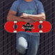 Monopatín rojo de Rockstar de Fock Rockstars.