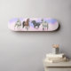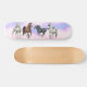 Un monopatín por completo de caballos bonitos de los grises a aullar y a ennegrecerse por el artista equino Carolyn McFann del estudio de ronroneo de dos gatos.