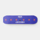 Libertario orgulloso del monopatín en las letras blancas. Estatua de la libertad, de estrellas rojas, y del fondo azul.