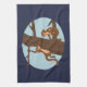 Toalla de cocina con un mono marrón trepando un árbol, y otro sentado en el árbol, ilustracion de MaxiHarmony / Radka Kavalcova