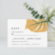 Diseñado para coordinar con nuestra colección de accesorios y bodas Monstera, esta elegante invitación de RSVP de boda botánica presenta una ilustración de una hoja de monstera amarilla.