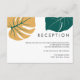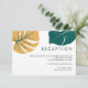 Diseñado para coordinar con nuestra colección de boda tropical Monstera, esta elegante tarjeta de cerramiento de recepción botánica presenta dos hojas de monstera en amarillo y verde, encabezando el texto de su mensaje deseado.