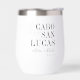 Impresiona a los invitados de bodas de destino con estos favores de boda personalizados de moda tropical. El diseño presenta un ilustracion de hojas de monstera verde oscuro con su destino boda alineado a la derecha (se muestra con Cabo San Lucas) en letras clásicas de serif. Añade tus nombres bajo el guión cursivo manuscrito, así como el año. Se puede ajustar la posición de la hoja y cambiar los colores para que coincidan con los colores bodas utilizando la herramienta de diseño de Zazzle.