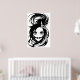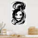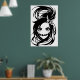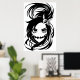 Arte blanco y negro de una joven monstruo espeluznante con el pelo negro. Este es un arte generado por IA.