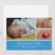 Muestra muchas caras de tu recién nacido con este anuncio de color. Las fotos de su bebé están organizadas en un fotomontaje moderno y fresco. El nombre y las estadísticas del bebé se establecen en tipos de letra clásicos con un fondo de color gratuito. Comparte tus noticias especiales con la familia y amigos con estilo.