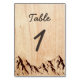 Montaña quemada en madera Rústica carta número de mesa parte de la colección de Bodas Rústicos de Madera