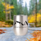 Un tumbler termal con paisaje montañoso de color negro y un texto de personalizable: perfecto para los amantes de la naturaleza y las aventuras al aire libre!