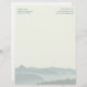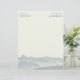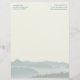 Papel de membrete personalizado con escenario de montaña para uso en una oficina rural. Texto personalizar en dos lugares en la parte superior del papel blanco. El texto se imprime con letras finas y se alinea con los bordes. Hay tres filas en los ejemplos y se pueden agregar más. O borrar ambas, ya sea muestras.