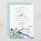 Esta exquisita invitación a bodas muestra un diseño casual de acuarela de bosque y paisaje montañoso, con detalles sencillos y un texto de caligrafía rústica. En el reverso se respira un color azul polvoriento sereno. Con un atractivo atemporal y contemporáneo, esta invitación captura perfectamente la esencia de su atrevido boda salvaje.