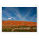 Monty el Lipizzan que galopa a través de un campo de amapolas anaranjadas.