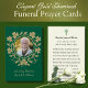 Honren la vida y la fe de su ser querido con este funeral católico de inspiración irlandesa. La parte delantera incluye una corona de champú dorada sobre un fondo verde profundo que rodea una foto de los fallecidos, con el nombre personalizado debajo. Lo contrario incluye la oración tradicional por los fallecidos fieles y un símbolo de la cruz celta, ofreciendo un recuerdo sagrado arraigado en la esperanza de la vida eterna. Ideal para familias católicas irlandesas y servicios funerarios con intercesión marital y santa.