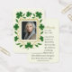 Un bellamente reverenciado diseño conmemorativo católico con rocas de champú dorado y bordados de inspiración celta sobre un fondo verde esmeralda profundo. La parte delantera contiene una foto de tu desaparecido enmarcado en una elegante frontera bordeada, mientras que la parte trasera ofrece una oración católica tradicional invocando la intercesión de la Santísima Virgen María y los Santos. Un recuerdo sagrado para honrar una vida de gracia y fe, perfecta para compartir en el funeral o en la misa conmemorativa.