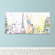 Monumentos del mundo envolvieron la huella de lienzo, con el Big Ben, el Arco del Triunfo, el Cristo Redentor, la Torre Eiffel, la Estatua de la Libertad, el Coliseo y la Torre Inclinada de Pisa.