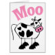 Adorable ilustracion de una vaca blanca y negra con la palabra "Moo" en rosa sobre él. Sus manchas son corazones. ¡Genial para cualquiera que recoja objetos de vaca!
