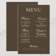 Showcase your carefully curated wedding feast with this striking Moody Coffee Minimalist Wedding Menu. The bold, deep Coffee Romance background offers a luxurious, high-contrast canvas, beautifully illuminating the Ivory text. At a commanding 5.5" x 8.5" size, this single-sided card clearly guides your guests through every detail of your dining experience, from delectable Starters to satisfying Mains and Dessert. Perfect for couples embracing a dark chic aesthetic, this menu instantly elevates your table setting, setting a tone of formal sophistication for your entire reception dinner.