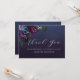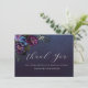 Una hermosa y elegante tarjeta de agradecimiento diseñada especialmente para un fiesta de 21 años. La elegante primavera floral contiene rosas rústicas violetas y peonías con copas de blanco y rosa azules. El fondo oscuro muestra realmente el texto blanco. Forma parte de la colección Moody Purple Floral. Contiene todos los elementos necesarios para crear una suite de bonito y papel único, suministros fiestas y decoraciones.