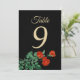 Set against a deep, royal black background that mimics a mysterious midnight sky, this card features our signature velvet crimson roses and delicate "starry night" galaxy accents. The bold, gold-toned numerical display ensures high visibility for your guests while adding a touch of sophisticated glamour to your tablescape. The combination of shimmering gold and crisp ivory typography creates a regal contrast that stands out beautifully.