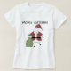 Una vaca vestida con un traje de Santa con una gran bolsa verde y un texto que dice "Navidades de Mooey" en camisetas de vacaciones, tazas, tarjetas, pegatinas, bolsas de tote, mousepads y mucho más.