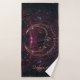 Nueva era astrología oro falso purpurina gráfico Luna en un fondo estrellado cósmico borgoña. El nombre de monograma y el inicial de la tipografía de tipos de letra modernos pueden personalizarse o eliminarse fácilmente. Una toalla de baño de diseño inspirada en el zodiaco para que su decoración del cuarto de baño sea elegante en el futuro.