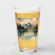 Watercolors of nature landscape of evening approaches and the moon begins to glisten on the lake, there are woods ANF trees with mountains in the background..