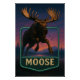 This Moose Poster featuring a bull moose mid leap as if jumping through the sign, is a great way to add a touch of personalization to your room, office, or any space. A great gift for any hunter, wildlife enthusiast, or anyone who loves nature inspired designs. Part of a growing series featuring wildlife and game fish, collect them to build your own personal wildlife gallery.