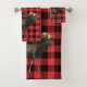 Un patrón atemporal de búfalos en rojo y negro con un ilustracion de alce caminando. La rebanada nunca sale de su estilo. Perfecto para la decoración del cuarto de baño o la decoración rústica de la cabaña.