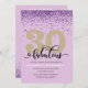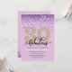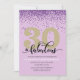 Elegante púrpura 30 y fabulosa invitación de fiesta de cumpleaños con acentos purpurinas. Añada los detalles de su fiesta utilizando nuestra plantilla sencilla.