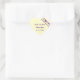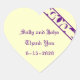 Este pegatina está decorado con los colores morado y amarillo pálido, con una barra adamascada de los mismos colores. Personalizado con nombres, texto y fecha,