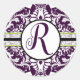 Morado Damasco Pegatina inicial Letra Q Boda