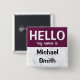 Púrpura hola mi nombre es botón de pin personalizado. Esta etiqueta con el nombre tiene un fondo morado con un moderno patrón de mármol blanco para tu nombre personalizado. Utilice esta plantilla sencilla para personalizar del texto y el nombre. Ideal para reuniones, reuniones de negocios, grupos de iglesia, grupos de estudio, clases de formación, reuniones, fiestas, empleados, etc..