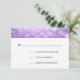 Productos Coincidentes Disponibles! Elegante diseño de bodas "RSVP" con Boda morado Winter Wonderland Sparkle y personalizado RSVP texto. ¡personalizable total! Fácil de usar y fácil de personalizar. ¡No te quedes sin el tuyo!