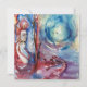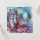 Pintura contemporánea figurativa al agua, colorida, caprichosa, romántica y simbolista de una figura legendaria espiritual y mística en colores azul suave, rosa, rojo, púrpura, violeta y blanco por Alessandro Lumini 1988. Diseño genial y artístico fácil de personalizar para una ceremonia de boda, tarjeta de anuncio de nupcias, tarjetas de lugar, save-the-date, tarjetas de agradecimiento, fiestas de despedida de soltera, dulces 16, fiestas de cumpleaños de quinceañera, fiestas de compromiso romántico, Navidad, fiesta de oficina de vacaciones, reuniones familiares, celebraciones de Nochevieja, día de San Patricio, Carnaval, fiestas de Martes de Carnaval, aniversarios, reuniones, graduaciones escolares, conciertos, recitales o casi cualquier evento que desees!. Morgan le Fay, conocida alternativamente como Morgane, Morgaine, Morgana y otras variantes, es una poderosa hechicera de Avalon en la leyenda artúrica. Avalon (probablemente del vocablo celta galés afal, que significa manzana; es una isla legendaria que aparece en la leyenda artúrica, famosa por sus manzanas hermosas. Aparece por primera vez en el relato pseudohistórico de 1136 de Geoffrey de Monmouth "La historia de los reyes de Bretaña" como el lugar donde se forjó la espada de Caliburn (Excalibur) del rey Arturo y más tarde donde Arturo es llevado para recuperarse de sus heridas después de