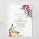El diseño presenta una estampada de colores florales en tonos violeta, amarillo y burdeos sobre la vegetación y las flores de peón. ¡Genial para las celebraciones de sus bodas!