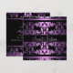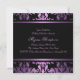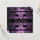 Esta elegante invitación a personalizable presenta un patrón de damasco morado en un fondo negro. Personalizar añadiendo tus datos en la fuente que elijas.