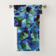 Mosaico de triángulos y hexágonos irregulares verdes y azules, desordenado y sobrepuesto. -El color rojo oscuro que divide las formas se puede cambiar, utilizando las opciones de color de fondo del sitio web.