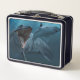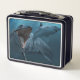 Fotografía submarina de los mosasaurios persiguiendo a tiburón, tema del mundo musical